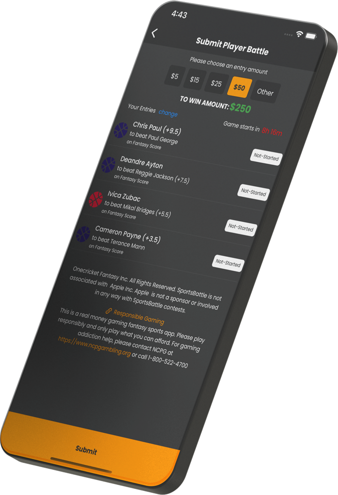 Choose up to 5 players and select who will win their matchup to win up to 15x your entry! A $25 entry wins you $375